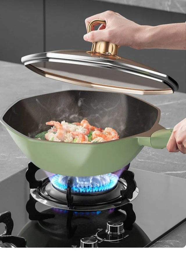 Langlebiger, antihaftbeschichteter, achteckiger Topf aus Lavagestein