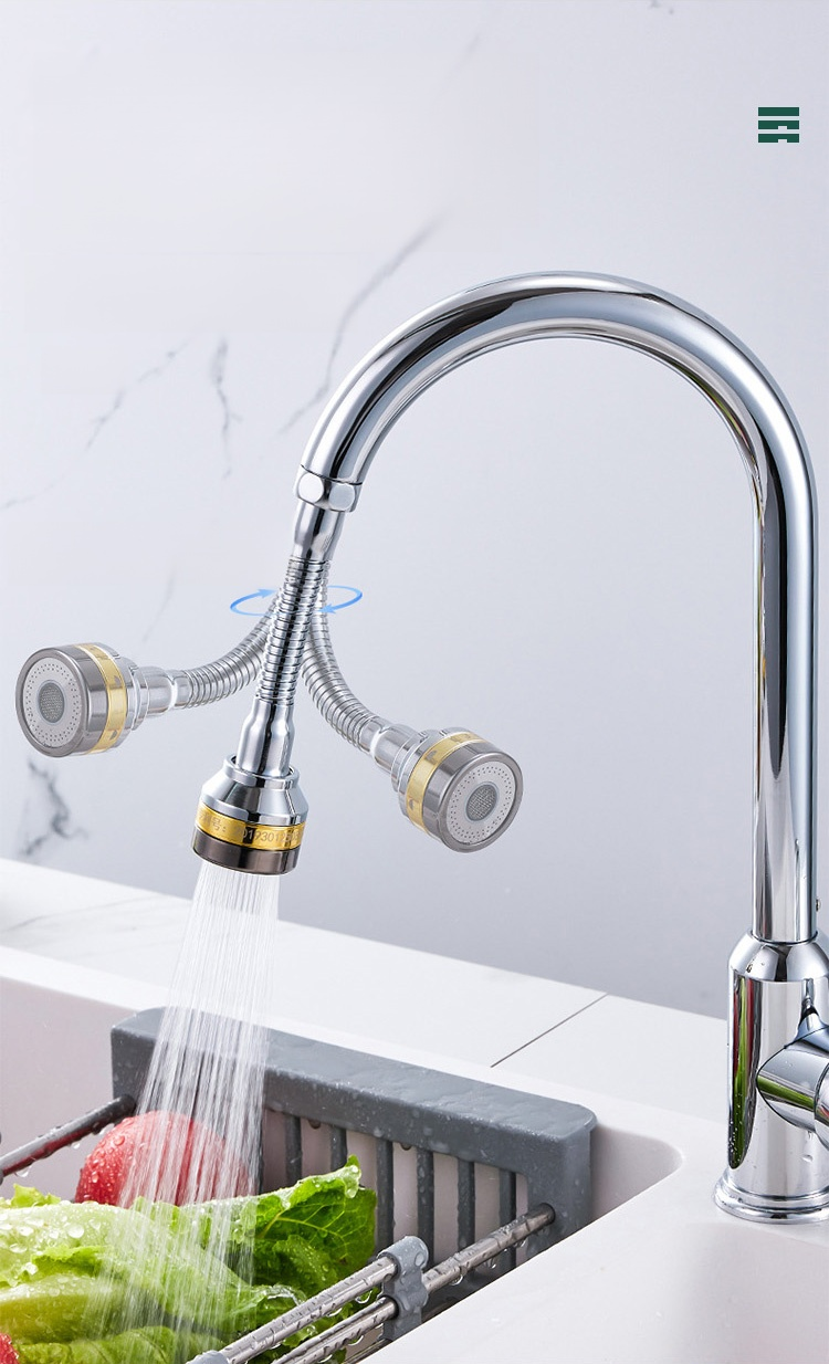 Third gear turbocharged splash proof universal faucet extension device